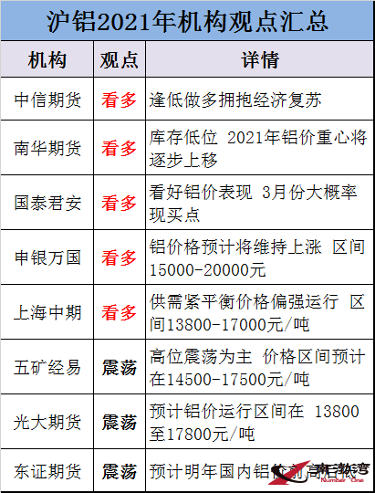 【金屬鋁】2021年滬鋁會(huì)怎么走?各大機(jī)構(gòu)看法出現(xiàn)明顯分歧